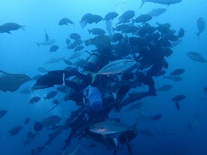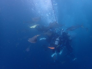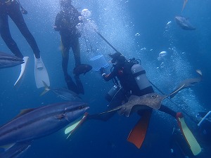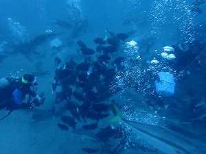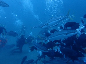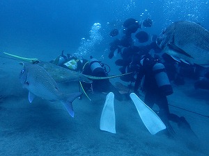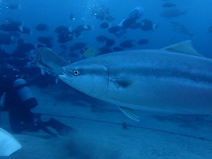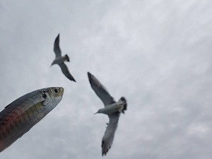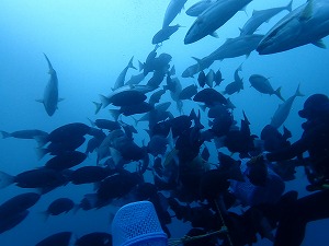 去年は海鳥が潜ってましたが、今年はコブダイ、クエ、ブリ、マアジの参戦で賑やかさが更に