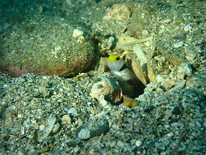 そうです!串本大島季節限定ポイント「内浦」が解放されました~!今季お初潜りですが、ネジリンボウは通常運転中です。カエルアンコウも籠の中にて生息中◎イシモチがやたら多く捕食に来るヤガラも丸丸太ってます((笑)