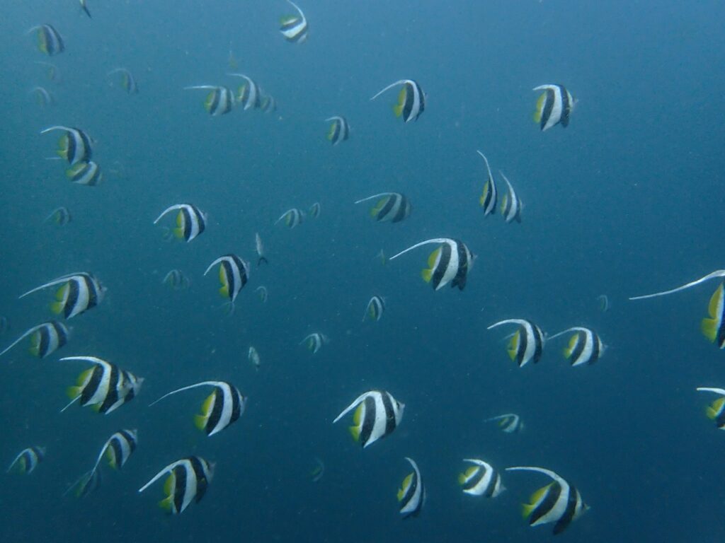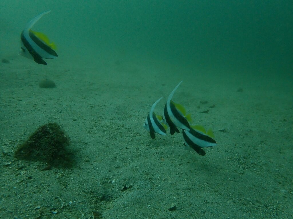 内浦では大き目なハタタテを4,5枚程度は見かけましたけど、ナギザキのような群れには遭遇したこと無しでした。今回会えた群れたちは、もしかして我々が連れてきたのかな?なんて都合のいい勝手な想像をしてしまいそうな出会いでした。