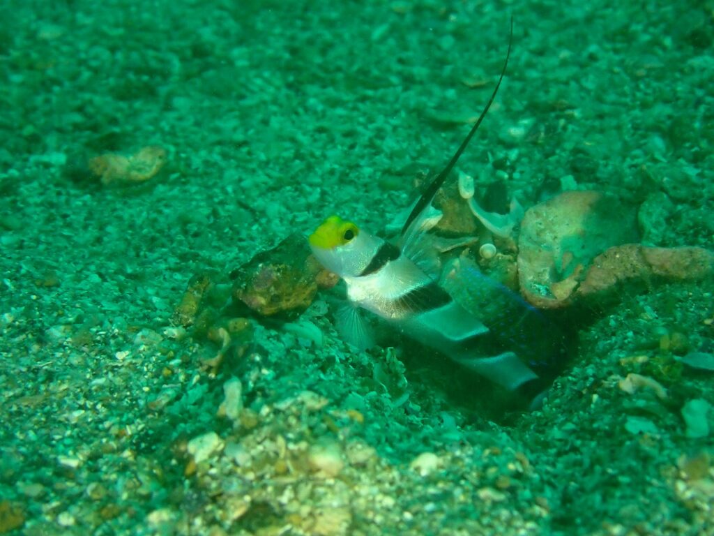 ・・・置き石の上がちょうど水深-5m程なので安全停止中でも遊べます・・・