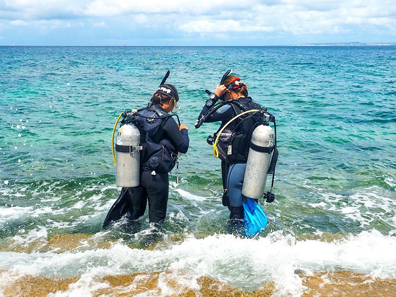 ダイビングの魅力は始めてからわかるもので「気がついたら夢中になっていた」という方がほとんど。だからこそ、当店では気軽にダイビングを体験いただけるコースも設けています。